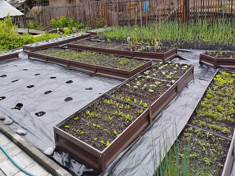Посмотрите, как выглядят грядки и клумбы на участках.